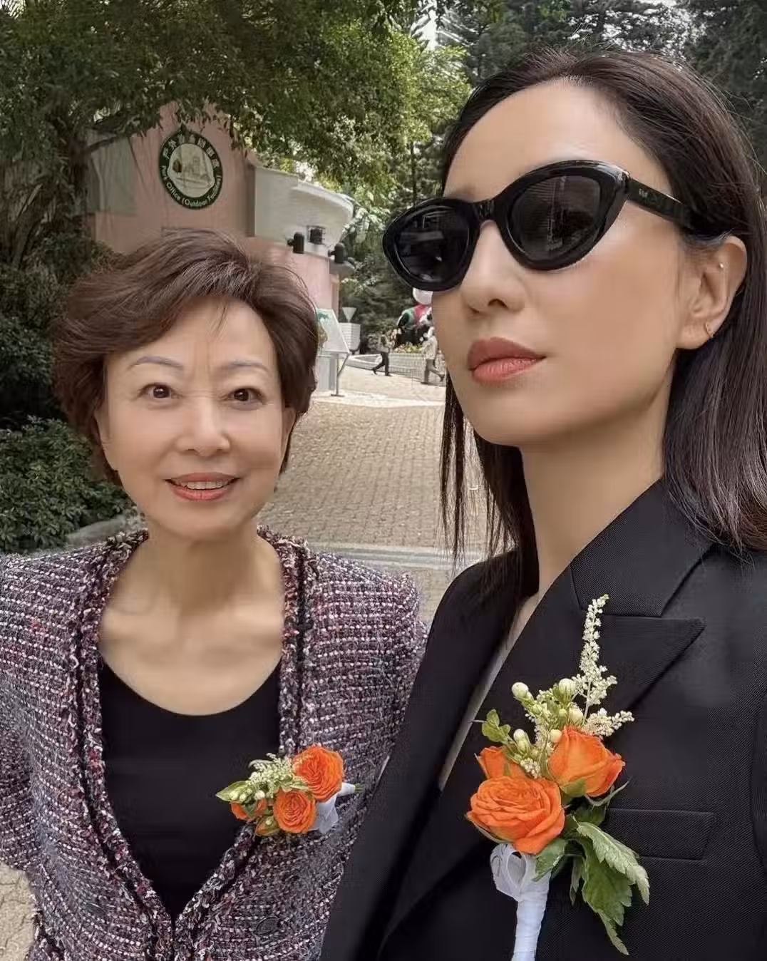 43歲鄭希怡在香港,出席弟弟的婚禮,和媽媽同框,母女長得太像了