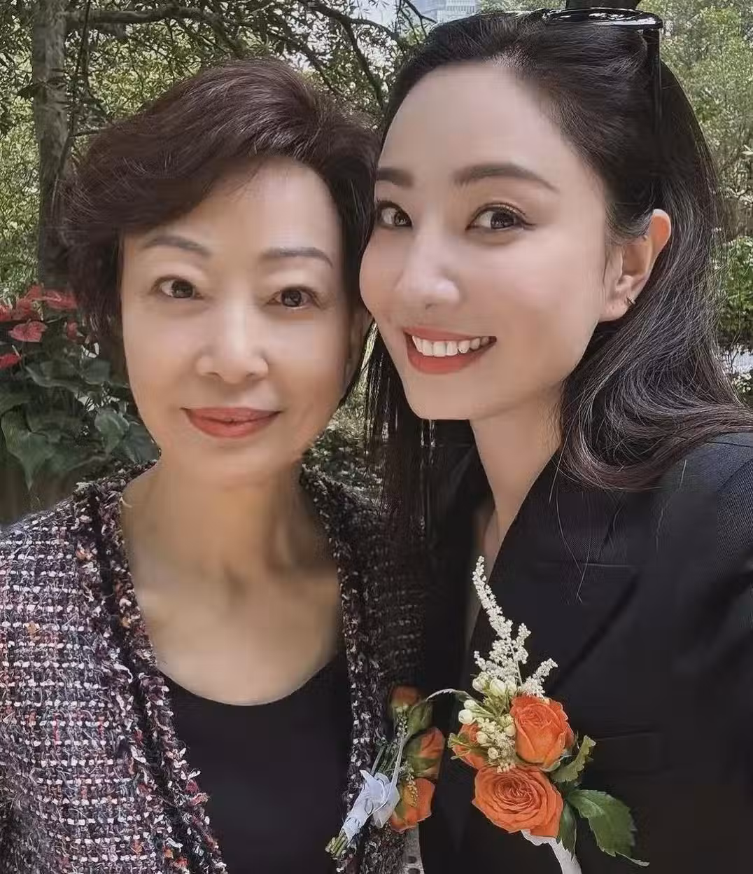 43歲鄭希怡在香港,出席弟弟的婚禮,和媽媽同框,母女長得太像了