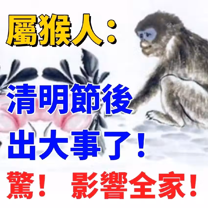🐵 生肖猴注意!清明節後出大事了!驚!影響全家!⚠️