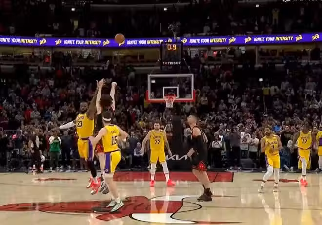 這還沒退役呢,現在雕像先過來了,可惜這個雕像並不是歌頌詹姆斯的能力和豐功偉績的,而是在強調詹姆斯12秒送出9分這個歷史第一爆送力的一個雕像,直接過來非常嘲諷,公牛就是為了諷刺:「你給我們送了這麼多分。」