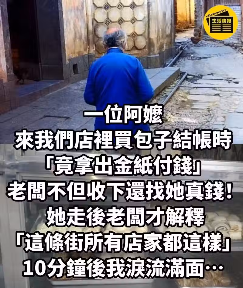 一位阿嬤來我們店裡買包子,結帳時「竟拿出金紙付錢」老闆不但收下還找她真錢! 她走後老闆才解釋「這條街所有店家都這樣」 10分鐘後我淚流滿面…