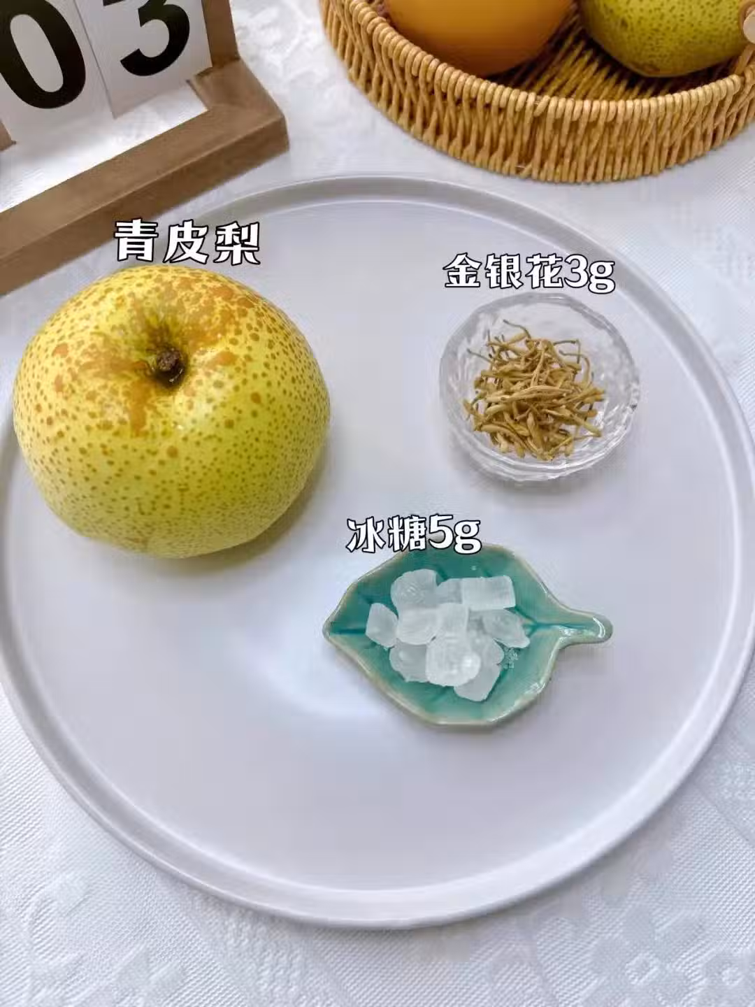 青皮梨,金銀花3g,