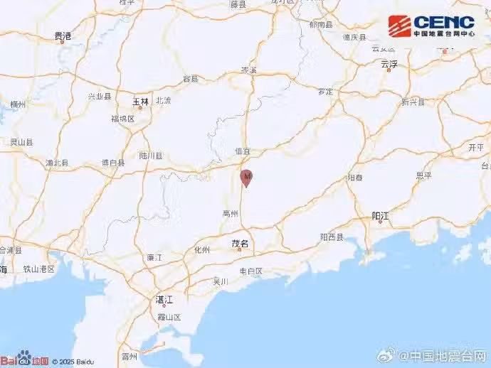 中國地震台網正式測定:3月30日20時46分在廣東茂名市高州市(北緯22.13度,東經110.98度)發生3.0級地震,震源深度10千米。