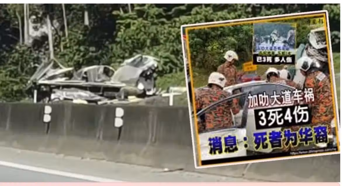 早前報導,加叻大道靠近文冬聯登附近即50.7公里處,於昨午5時30分發生涉及5輛交通工具的駭人車禍,1輛羅厘控撞向防撞墩,隨後沖向反方向車道,撞毀4輛轎車,釀3死4傷悲劇。