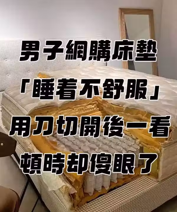 男子網購床墊「睡著不舒服」用刀切開後一看,頓時傻眼了