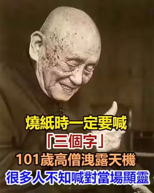 燒紙時一定要喊「三個字」,101歲高僧泄露天機:很多人不知,喊對當場顯靈!
