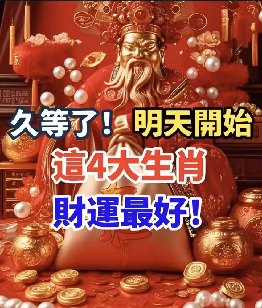 🎉 各位朋友好消息來了!從明天開始,這「幾大生肖」財運強勁,無論是正財、偏財,還是橫財,都將迎來大爆發! 如果你的生肖上榜,請趕緊留言「我接住這波好運!」,讓財神爺一路護佑你,讓你的口袋越來越滿,日子越過越順!