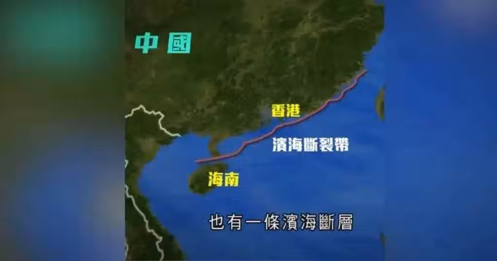 楊教授隨後就指出,香港以南50至60公里的海底存在「濱海斷層」,情況與實皆斷層相似