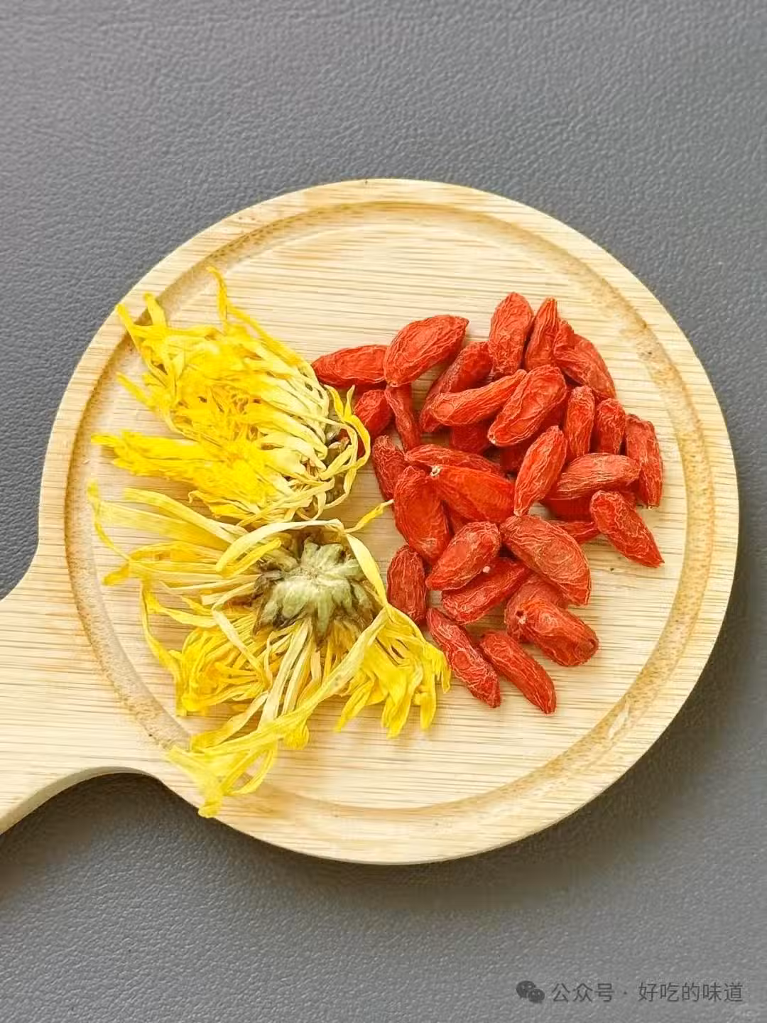 【做法步驟】:將幾朵金黃的菊花與一小把枸杞放入杯中,沸水沖泡,稍等片刻,一杯清香四溢的明目茶便完成了。