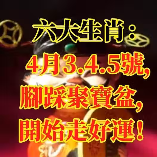 4月3.4.5號開始,腳踩聚寶盆的六生肖,開始走好運