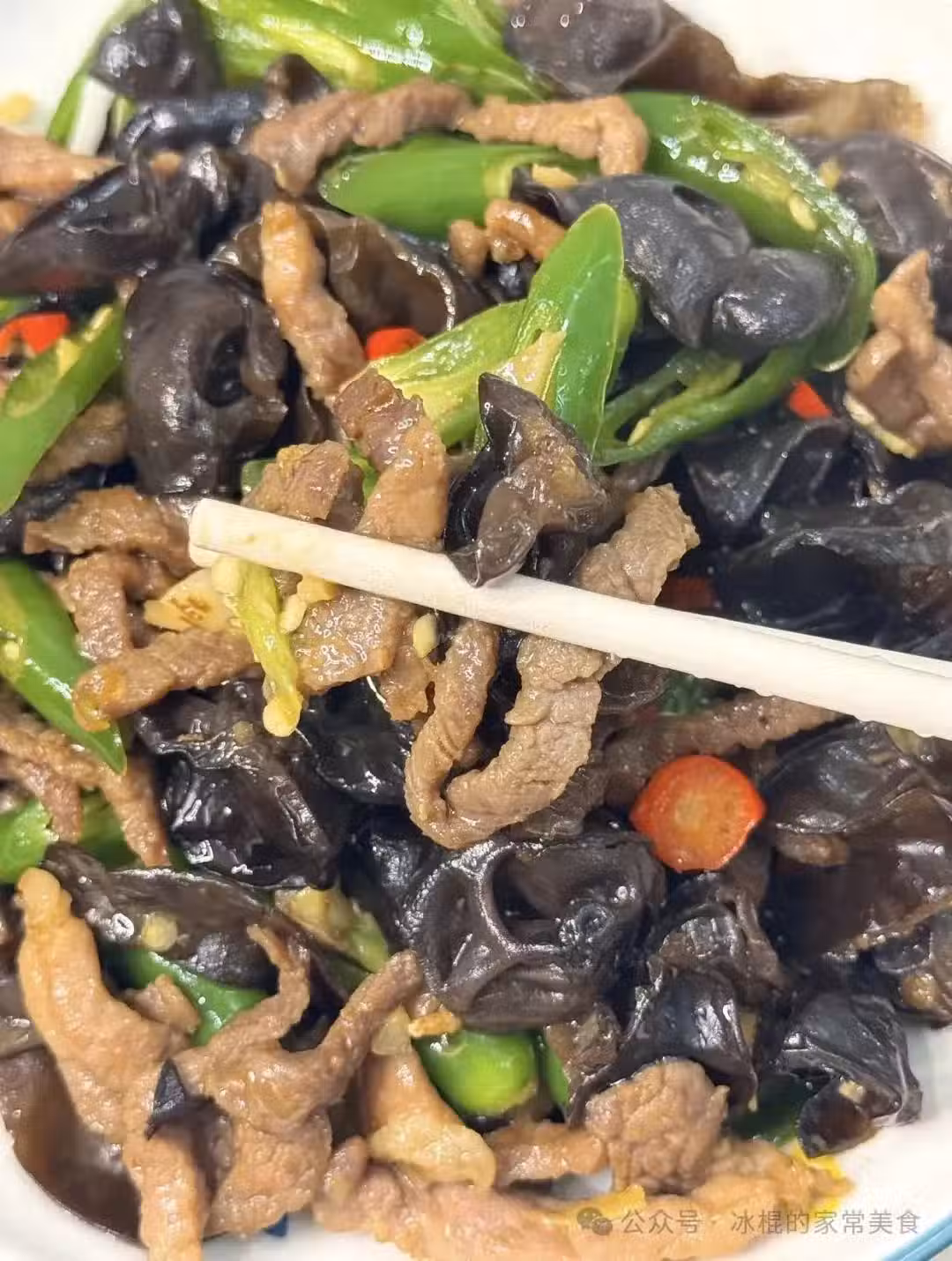 🔰這道菜肉絲鮮嫩、木耳脆爽,搭配雙椒的辛辣和松茸的醇香,超級開胃!配米飯或卷餅都絕佳~
