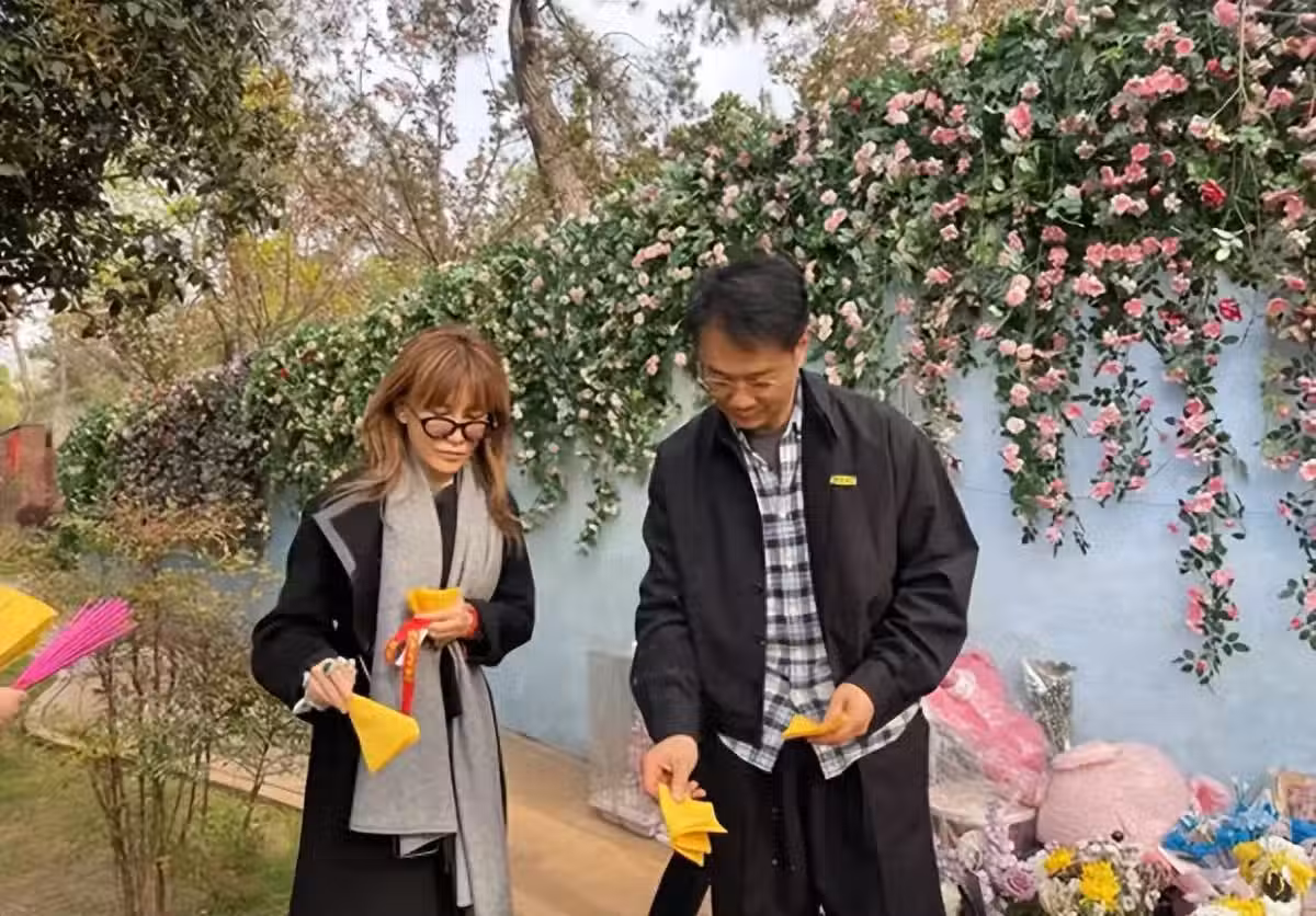 李玟二姐趕赴武漢為妹妹掃墓,燒紙錢滿是哀思!墓地周圍環境優美