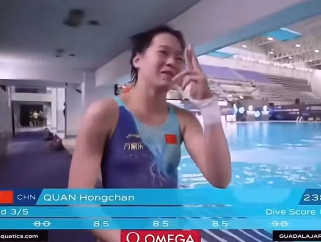 從視頻中,可以看出全紅嬋的狀態非常的興奮與放鬆,看到全紅嬋的表情,即使沒看到裁判打分結果,也感覺到沒問題,進入決賽一點問題都沒有。