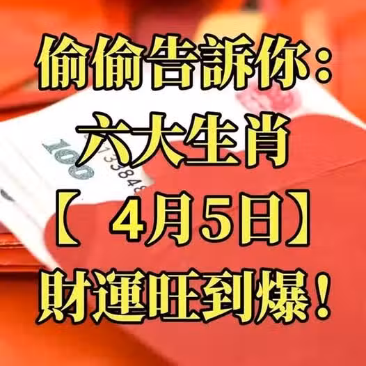偷偷告訴你:六大生肖【4月5日】財運旺到爆!