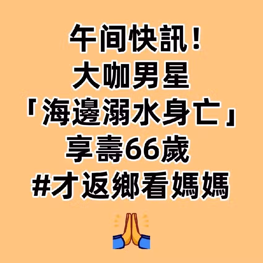 午間快訊/大咖男星「海邊溺水身亡」享壽66歲 #才返鄉看媽媽!