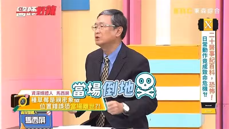 資深媒體人馬西屏表示,最近澳洲有一名40歲男子,因為被女友種草莓,當場倒地死亡,他指出,吸的時候產生血塊,血塊到腦部變血栓,變急性中風,「澳洲那個人就走了」,馬西屏回憶當時看到這個消息後,馬上用網絡搜尋是否有其他案例,結果一查不得了,還真的很多人因「種草莓」身體出狀況。