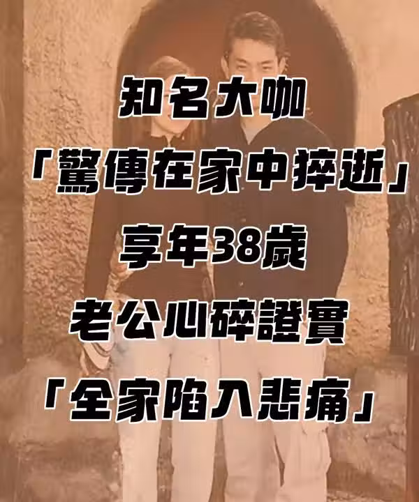 快訊 / 知名大咖「驚傳在家中猝逝」享年38歲!老公心碎證實「全家陷入悲痛...」