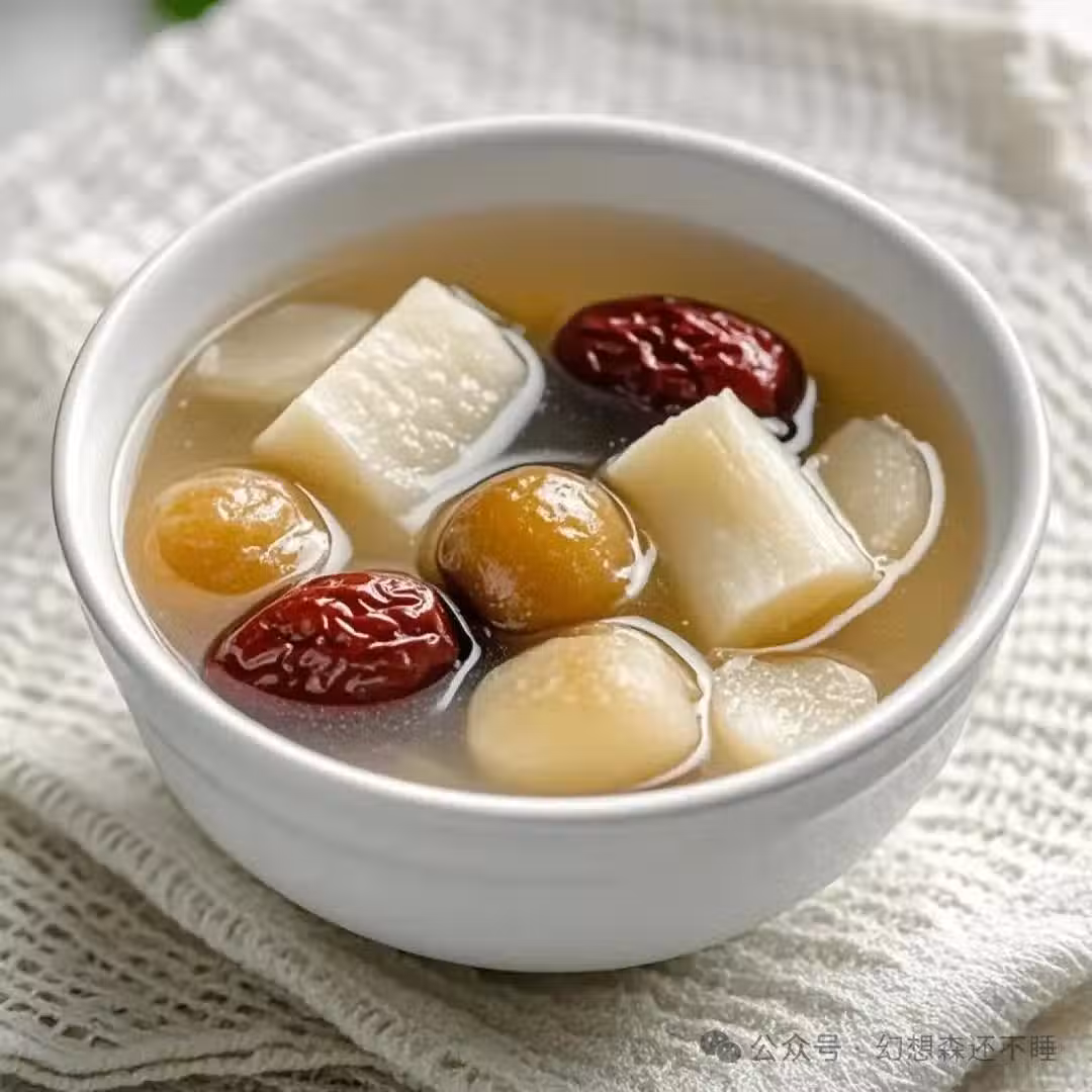 這道湯不僅味道香甜,更是滋補佳品。山藥、桂圓、紅棗,每一種食材都蘊含著大自然的饋贈。