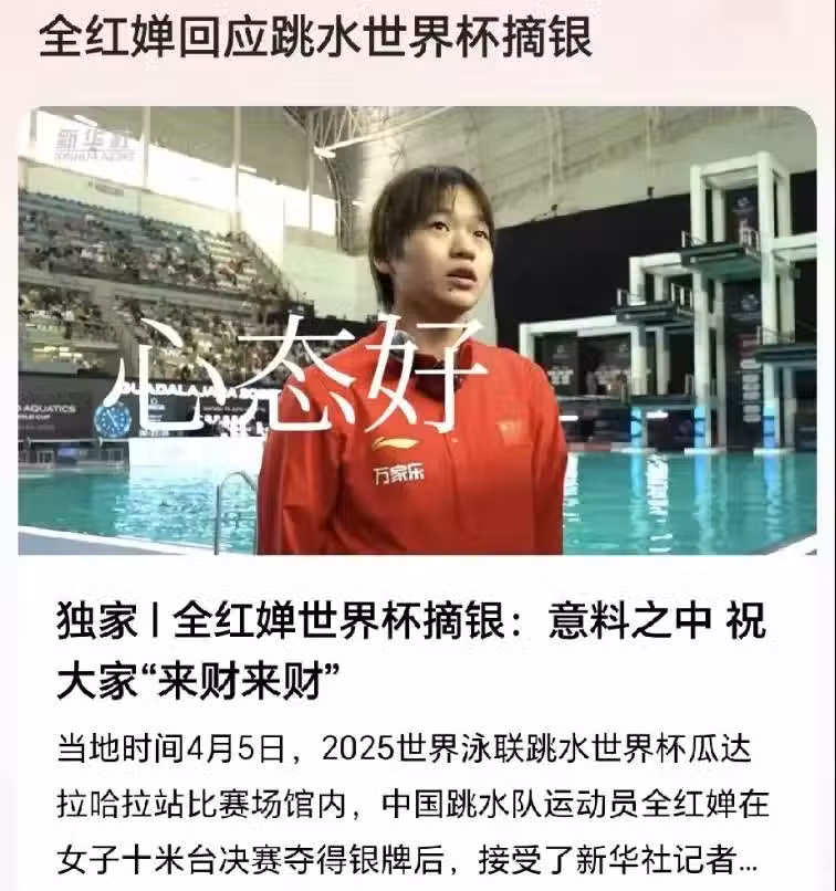 成人首秀惜敗,全紅嬋賽後兩方面的表現,比奪金更吸引觀眾的目光
