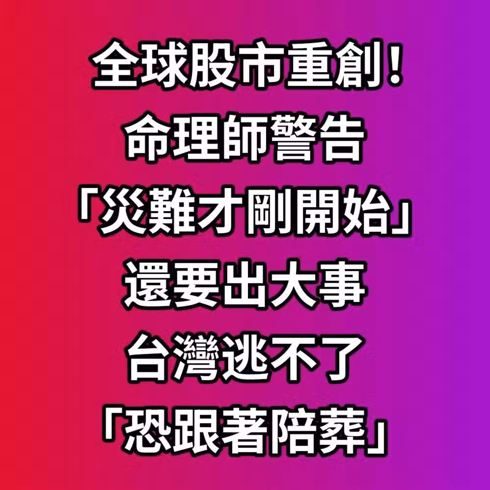 全球股市重創!命理師警告「災難才剛開始」台灣逃不了 「持續到這時間」恐跟著陪葬