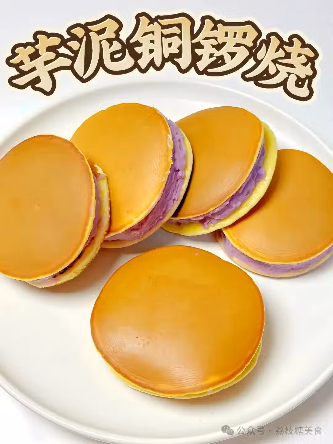 食材: 雞蛋2個、15克蜂蜜、50克白糖、芋頭,紫薯適量。 做法: 1.麵糊製作部分:雞蛋2個+15克蜂蜜+50克白糖,混合均勻。 篩入80克低筋麵粉、3克泡打粉,攪拌至無乾粉, 加10克清水混合均勻,蓋上保鮮膜靜置15分鐘。 2.芋頭和紫薯蒸熟,加牛奶和白糖壓成泥,舀一小勺麵糊放入鍋中,不粘鍋開小火,煎制表面冒氣泡, 翻面再煎1分鐘, 夾上芋泥即可。