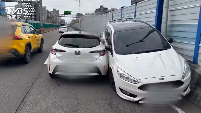 北市新生高架Focus鬼切害Toyota剎車不及撞上,整車失控轉180度卡護欄