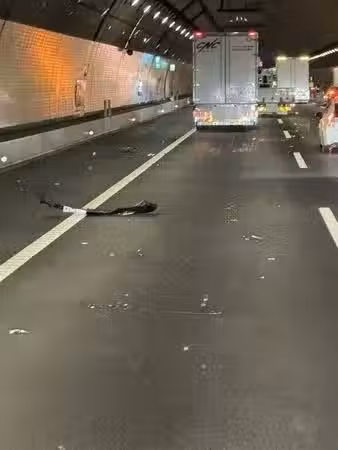 從現場照片顯示,隧道內散落大量車體碎片,包括保險杆殘骸、塑膠碎片與部分汽車零件,而另一輛黑色轎車車頭嚴重受損,足見撞擊力道之大,而此事故也造成三線車道回堵長達3公里,讓許多因此受困的駕駛人怨聲載道。
