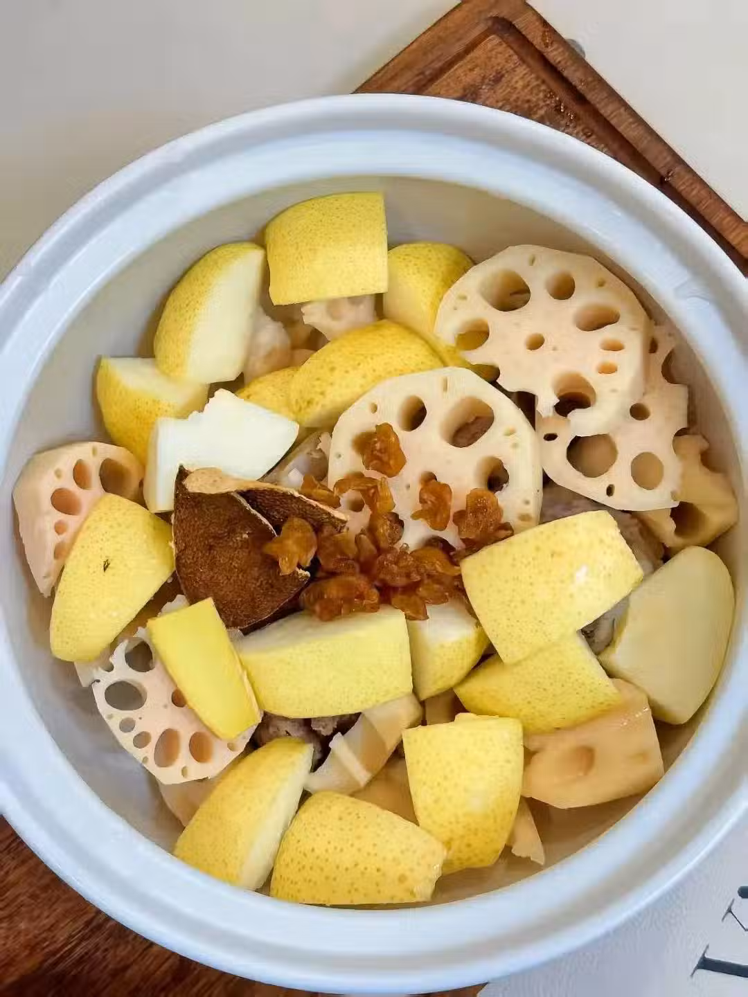 蓮藕、雪梨、桂圓、陳皮、豬骨、薑片