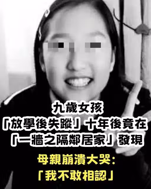 九歲女孩「放學後失蹤」十年後竟在「一牆之隔鄰居家」發現, 母親崩潰大哭:「我不敢相認」