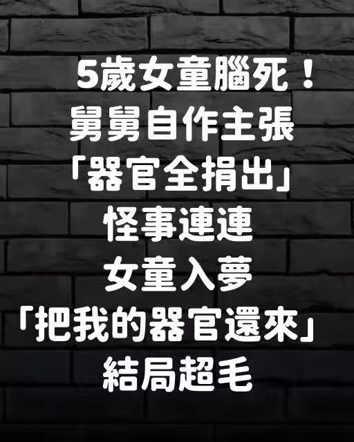 5歲女童腦死!舅舅自作主張「器官全捐出」怪事連連 女童入夢「把我的器官還來」結局超毛