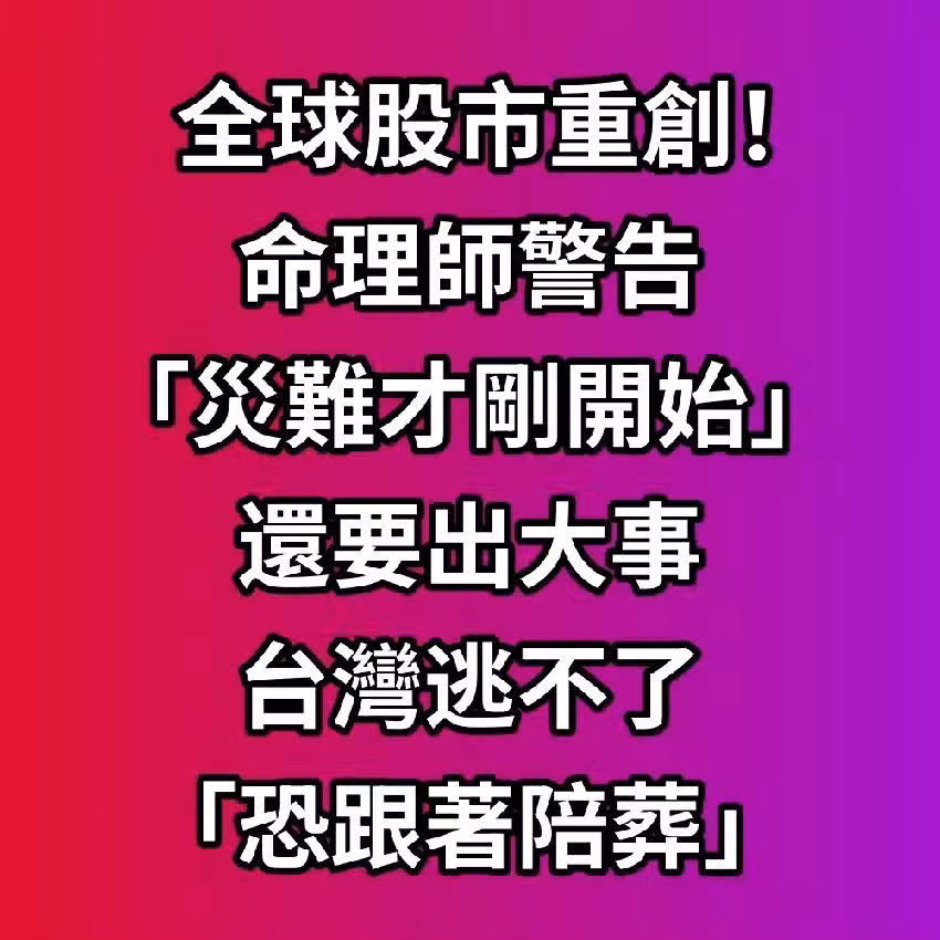 全球股市重創!著名命理師警告「災難才剛開始」!台灣「準備跟著陪葬」...