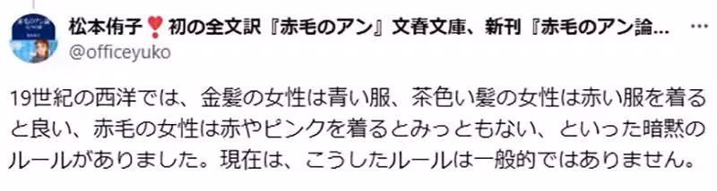 松本侑子負責翻譯過2019年出版的《清秀佳人》日文新譯版