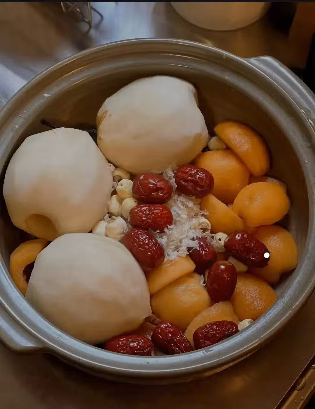 雪梨、枇杷、金燕耳、蓮子、紅棗、枸杞、黃冰糖