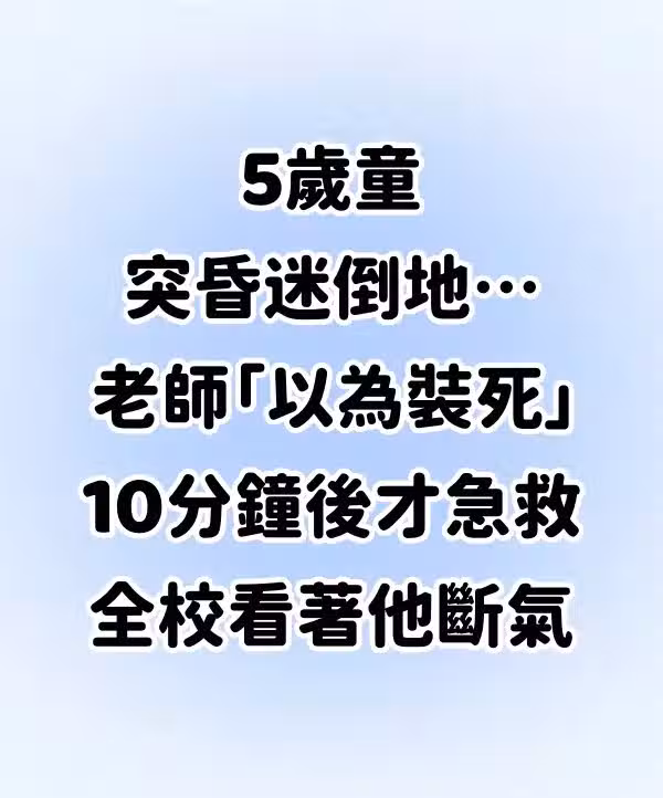 5歲童突昏迷倒地…老師「以為裝死」10分鐘後才急救 全校看著他斷氣