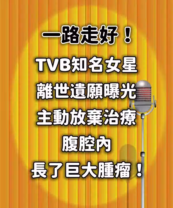 一路走好!TVB知名女星離世遺願曝光,主動放棄治療,腹腔內長了巨大腫瘤............