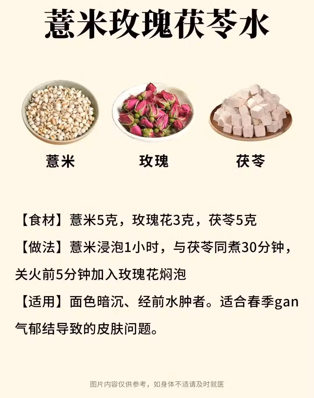 薏米赤小豆芡實水是一款經典祛濕健脾飲品,結合三種食材特性,適合調理體質、改善濕氣問題。赤小豆:可利尿消腫,含膳食纖維促進排尿,改善水腫、薏米:祛濕健脾,薏苡仁油增強脾胃功能、芡實:補脾止瀉,益腎固精,赤小豆利水,薏米健脾,芡實固腎,三者形成「祛濕-健脾-補腎」閉環,改善濕氣重、脾虛及腎虛問題。 食材:赤小豆、薏米、芡實各10-15克(1:1:1比例)。步驟: 赤小豆、薏米炒熟備用; 三者浸泡2小時,大火煮沸後轉小火煮30分鐘;濾水飲用,可連渣食用增強效果。關鍵細節炒制:薏米、赤小豆不炒易傷脾,體寒者可能月經紊亂。浸泡:提前浸泡縮短煮制時間,營養更易析出。