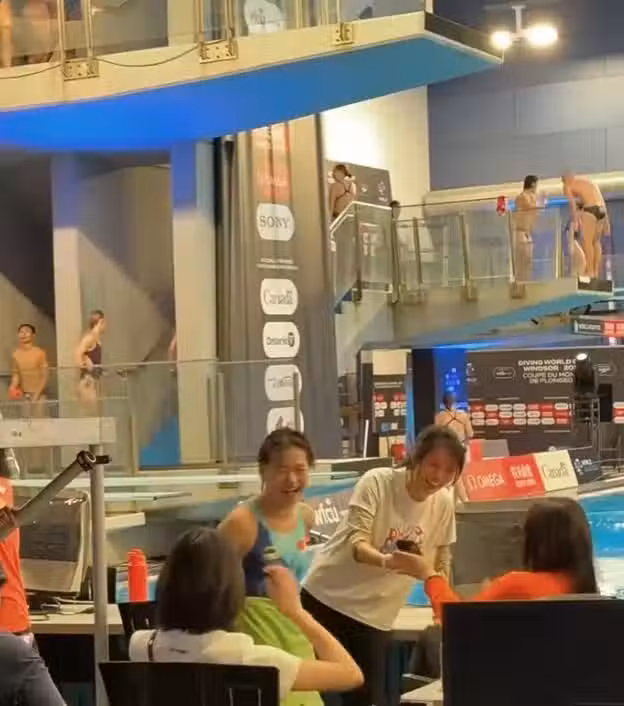 據悉,全紅嬋這次來到2025跳水世界盃溫莎站,將和陳芋汐一起挑戰女子十米單人台跳水,而郭晶晶則是此次溫莎站的評委。早在前一天就有網友在訓練場館偶遇兩人了。