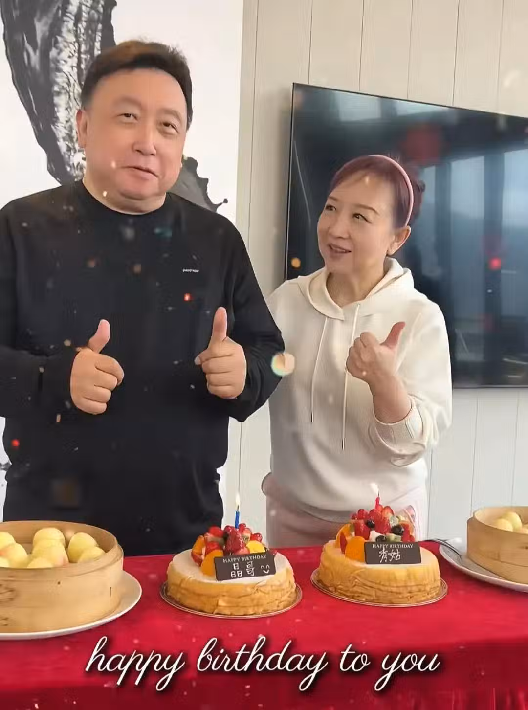 75歲陳百祥在香港,為老婆慶祝生日,大方秀恩愛,親吻黃杏秀臉頰
