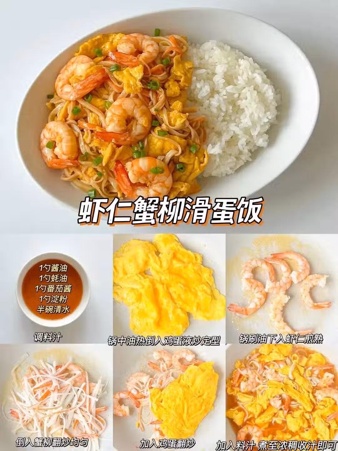 蝦仁蟹柳滑蛋飯:港式茶餐廳平替,香港茶餐廳的「碟頭飯」,貴氣名字背後是樸實乾飯魂。雞蛋嫩得像布丁,蝦仁Q彈,蟹柳撕成絲鮮甜到上頭。