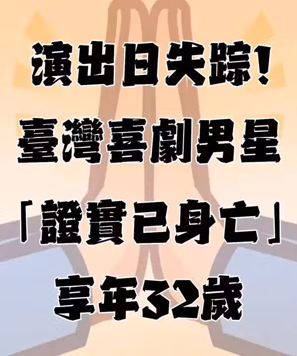 噩耗 / 演出日失蹤!台灣喜劇男星「證實已身亡!」