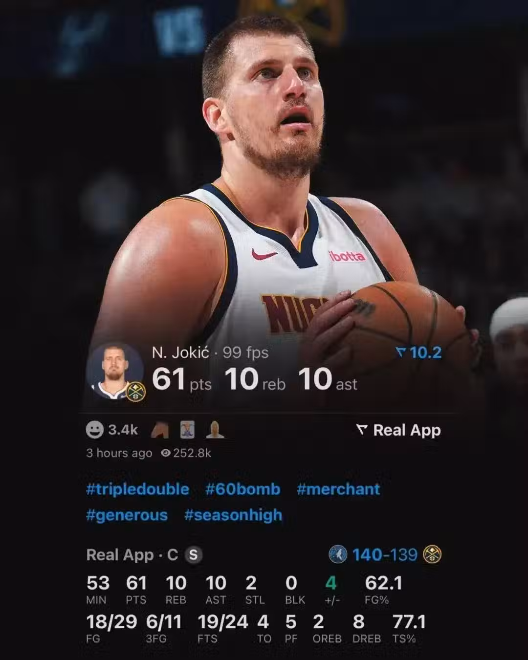 目前他的場均得分聯盟第三、場均籃板聯盟第二、場均助攻聯盟第二,但凡不是球隊戰績拖後腿,今年這MVP還得是屬於約基奇。 體現在高階數據上,本賽季約基奇在場階段,球隊百回合凈勝9.9分,不在場則是凈負7.9分,在場和不在場,凈效率差能夠達到+17.8,絕對的MVP級別影響力。