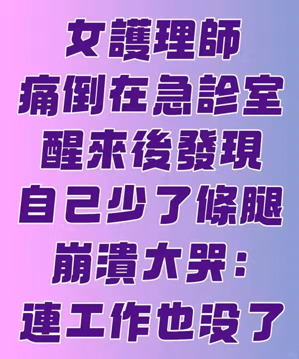 女護理師「痛倒在急診室」醒來後發現「自己少了條腿」崩潰大哭:連工作也沒了...