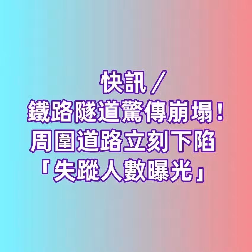 快訊/鐵路隧道驚傳崩塌!周圍道路立刻下陷「失蹤人數曝光」
