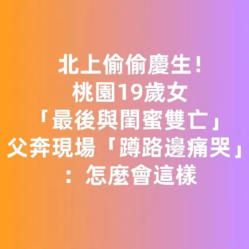 桃園女北上偷偷慶生!「最後與閨蜜雙亡」...父奔現場「蹲路邊痛哭」:怎麼會這樣