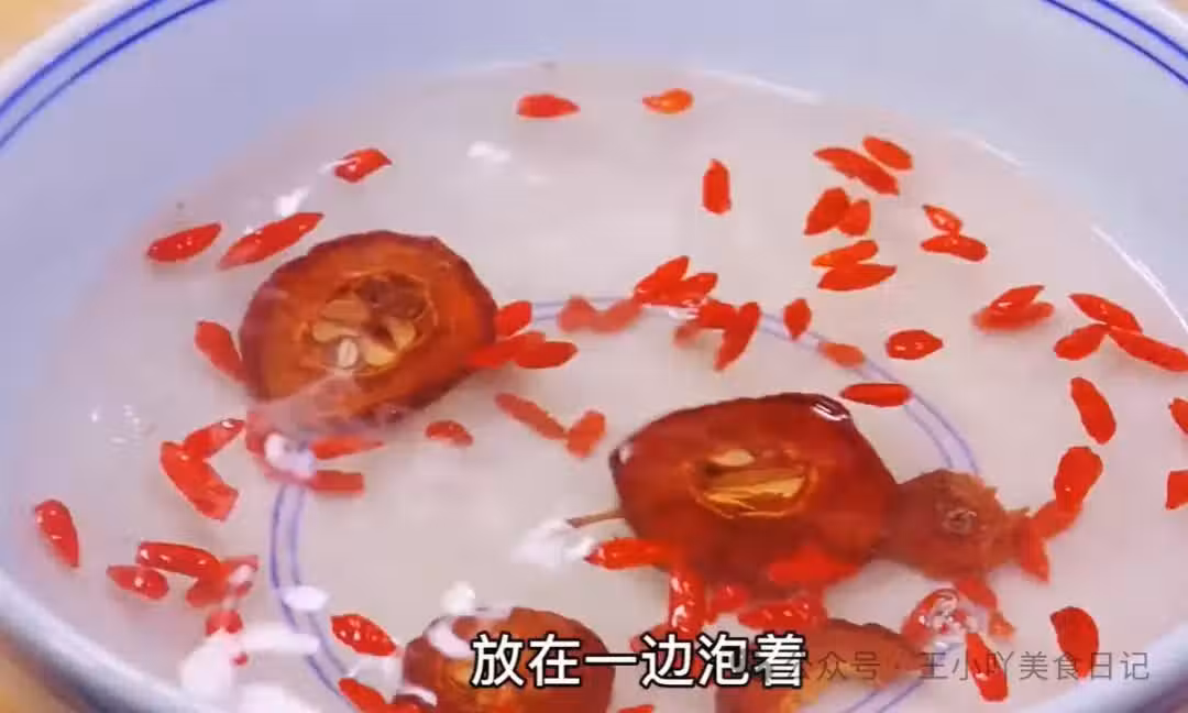 處理其他食材:另準備 50g 山楂乾和 10g 枸杞。山楂干具有一定的藥用價值,能消食化積、行氣散瘀;枸杞則有滋補肝腎、益精明目的功效。將山楂乾和枸杞放入碗中,加入適量清水,用手抓洗幾下,去除表面的灰塵,然後放在一邊浸泡著,讓它們充分吸收水分,這樣在煮制時更容易釋放出營養成分。