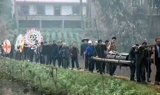 在送葬那天,李姨穿上黑色的喪服,排在送葬隊伍的第一位。
