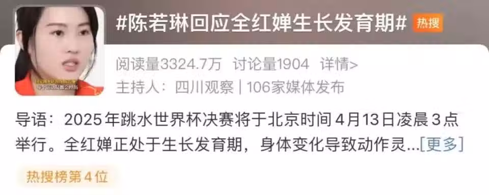 4月14日,有媒體就全紅嬋的心態發表評論稱——