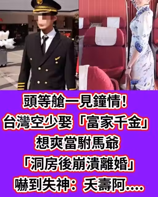 頭等艙一見鍾情!台灣空少「娶回富家千金」想爽當駙馬爺 「洞房後崩潰離婚」嚇到失神:夭壽阿....