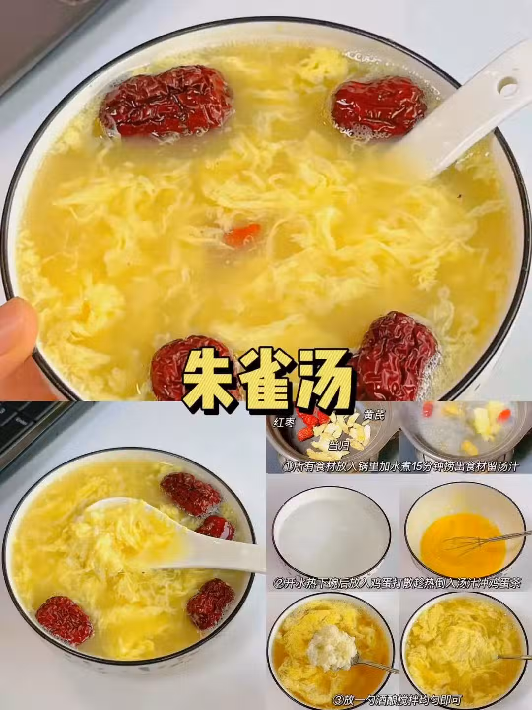 春天乾燥,別忘補津液!試試這碗朱雀湯,口感微甜順滑超好喝!我特意往裡面加了當歸、紅棗、黃芪、酒釀這些.....都是溫補的好的食材~不僅能滋補身體,還能生津潤燥,不用擔心上火問題呢!真的太養了!姐妹們快快安排起來吧~