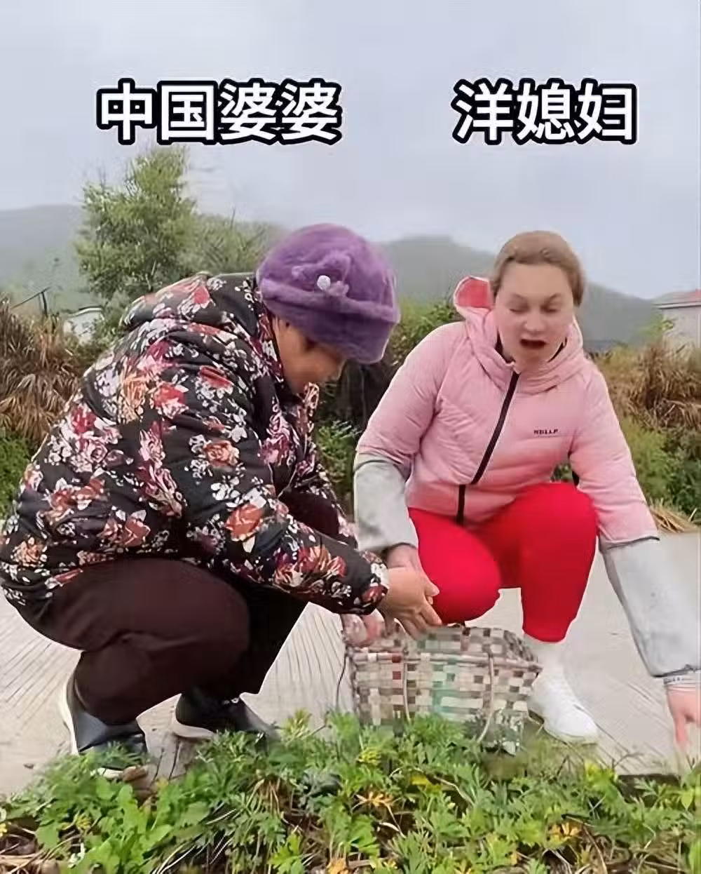 視訊中的她,身著樸素的衣衫,頭髮隨意地扎在腦後,臉上洋溢著幸福的笑容,與婆婆有說有笑地採摘新鮮蔬菜。